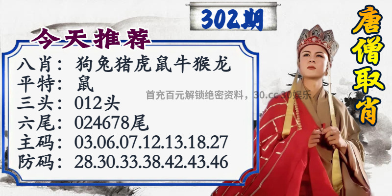 302期:绝杀一肖▮▮▮▮开:猴22准